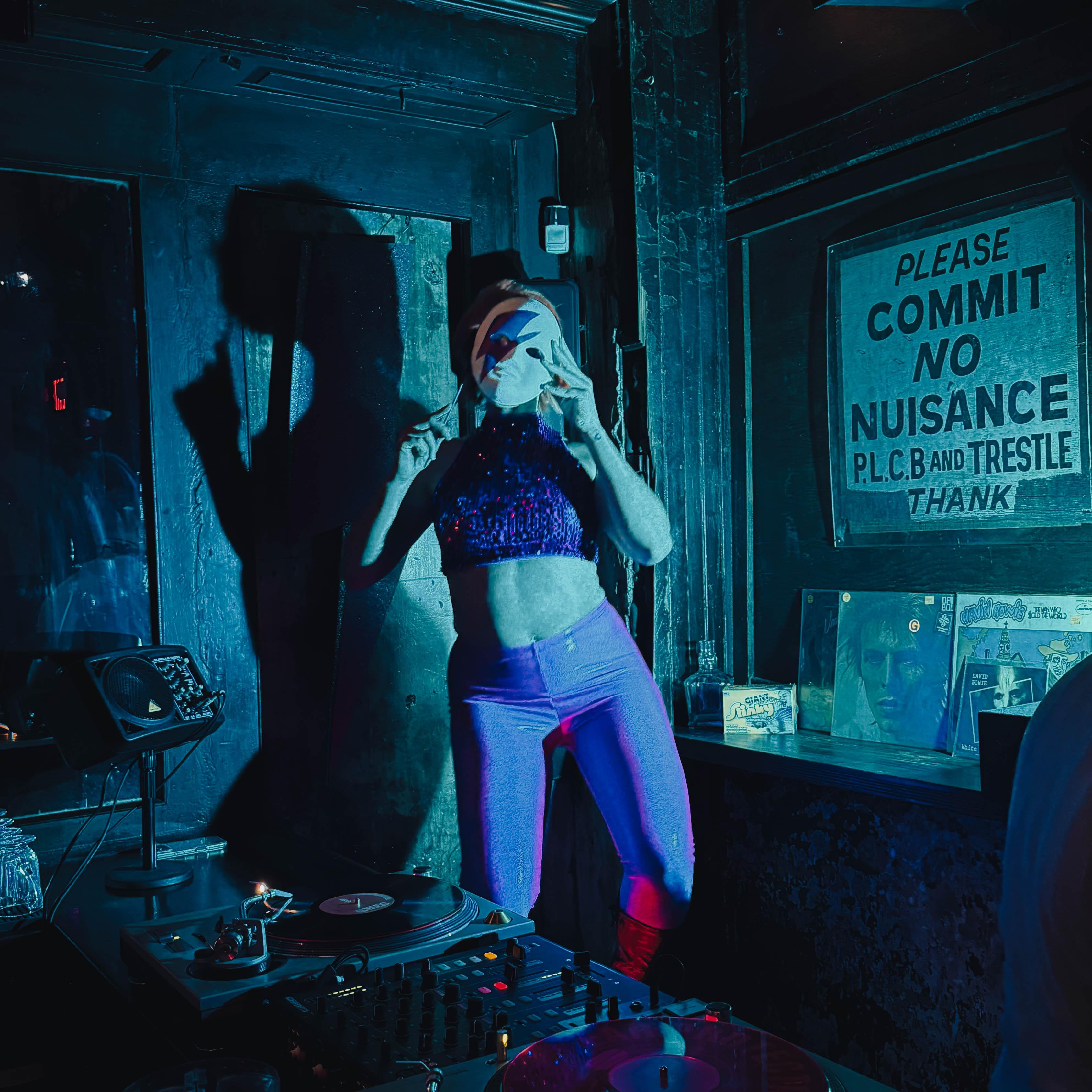 The evening at Trestle Inn demonstrated how this musical breadth creates surprising moments. When a beloved anthem like Suffragette City packed the dance floor, the energy reached one peak. But when a lesser known track like Panic in Detroit or Fashion began, different energy emerged as people who knew these songs found each other, creating smaller pockets of intense connection within the larger celebration. These micro communities formed and dissolved throughout the night as different songs activated different knowledge bases and affinities.