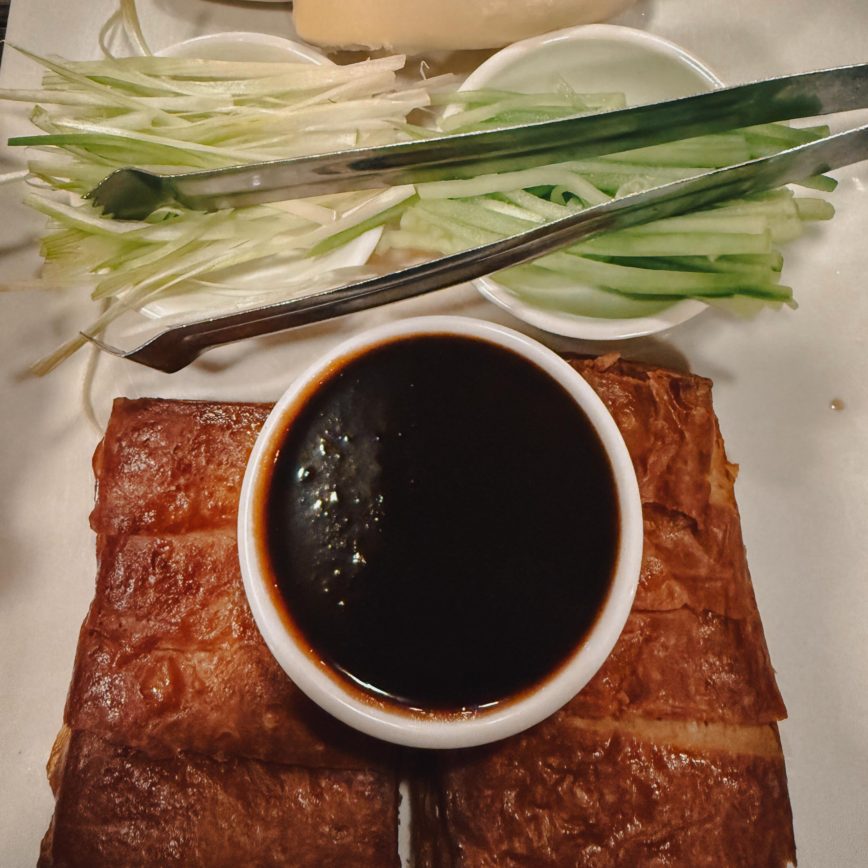 Shrimp dumplings. Pulled pork soup. Peking duck.